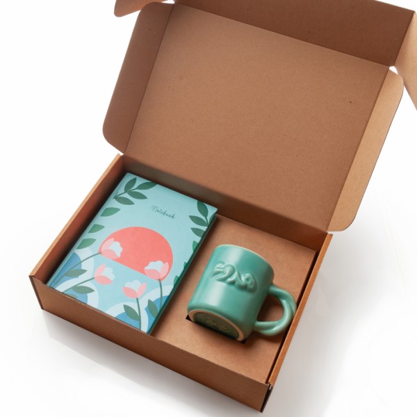 It contains a notebook of our creation and a handmade ceramic mug crafted by the talented artisans of Nabeul.